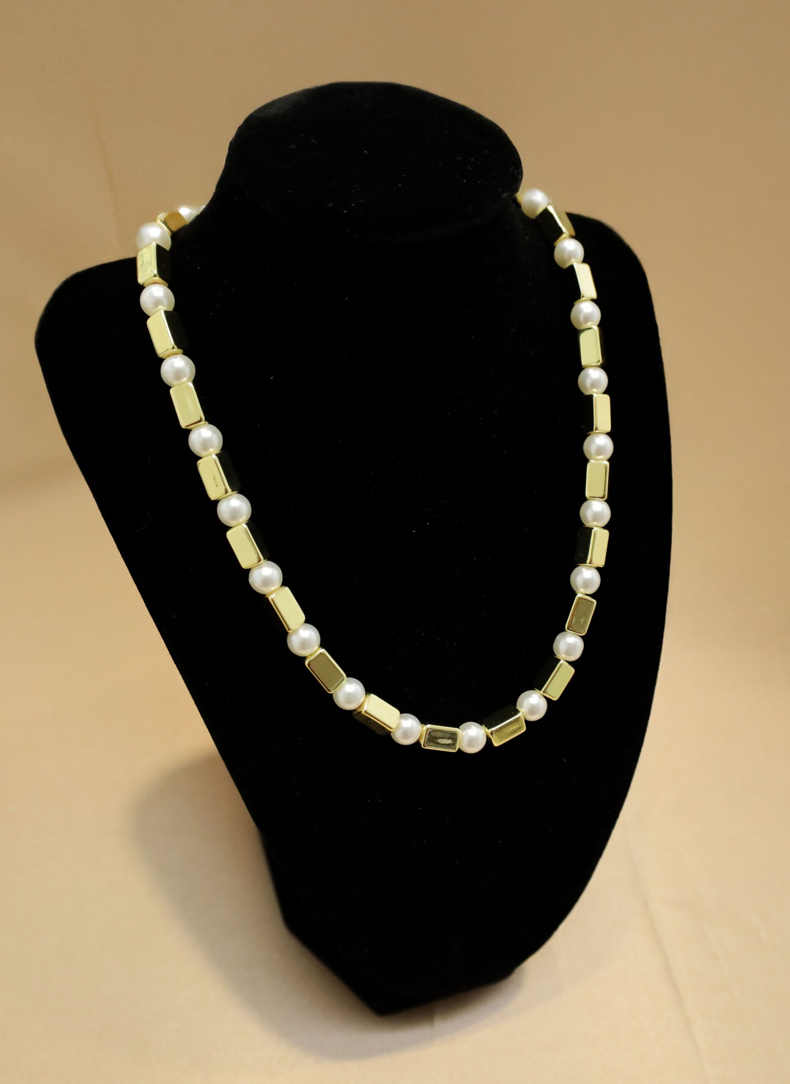 Collar de perlas con cuadrados bicolor
